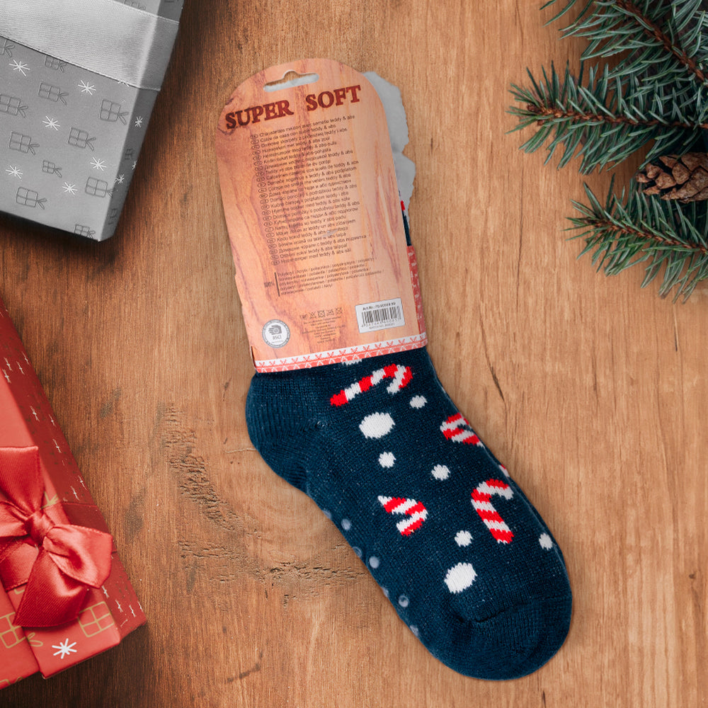 Calze invernali morbide e calde, decorate con fantasie natalizie. Perfette per creare un’atmosfera accogliente durante le feste e/o come idea regalo.